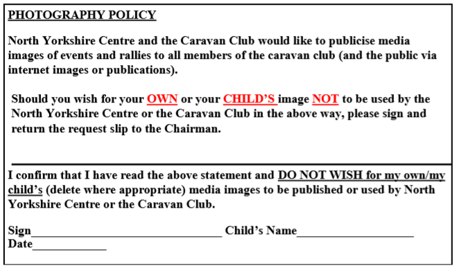 Please can we make everyone aware of the photography policy - Below or found in the handbook on page 37.